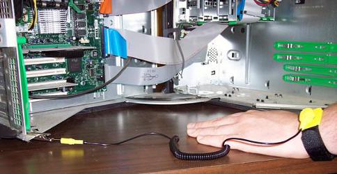 Pulseira antiestática ligada ao gabinete do computador. Observe que se