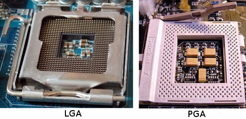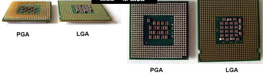 Os processadores inicialmente vinham dotados de pinos, num encapsulamento chamado de PGA (Pin Grid Array). Atualmente os processadores vêm dotados de contatos, em um encapsulamento chamado de LGA (Land Grid Array).