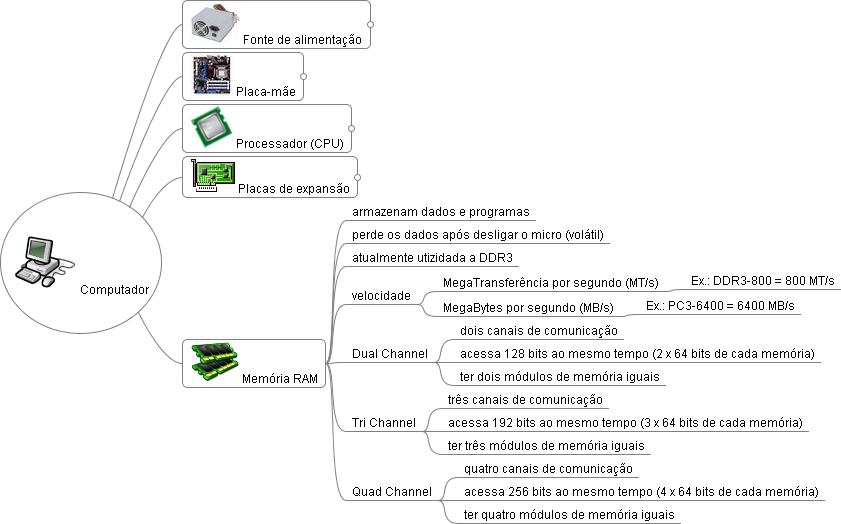- As memórias podem ter velocidades de transferência diferentes. Este dado é informado em MegaTransferênias por segundo (MT/s - por exemplo: memória DDR3-800 = 800MT/s) ou então por MegaBytes por segundo (MB/s