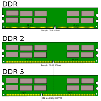 Existem atualmente três versões delas: DDR (com 184 pinos), DDR2 (240