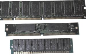 De cima para baixo: memória DIMM, memória SIMM 72